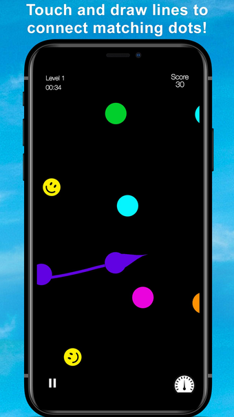 To play, simply touch the dots and drag your finger on the screen to draw lines connecting dots of the same color. By connecting multiple dots, you can score more points. Additionally, collecting "Happy Faces" will also earn you points and bonus badges.